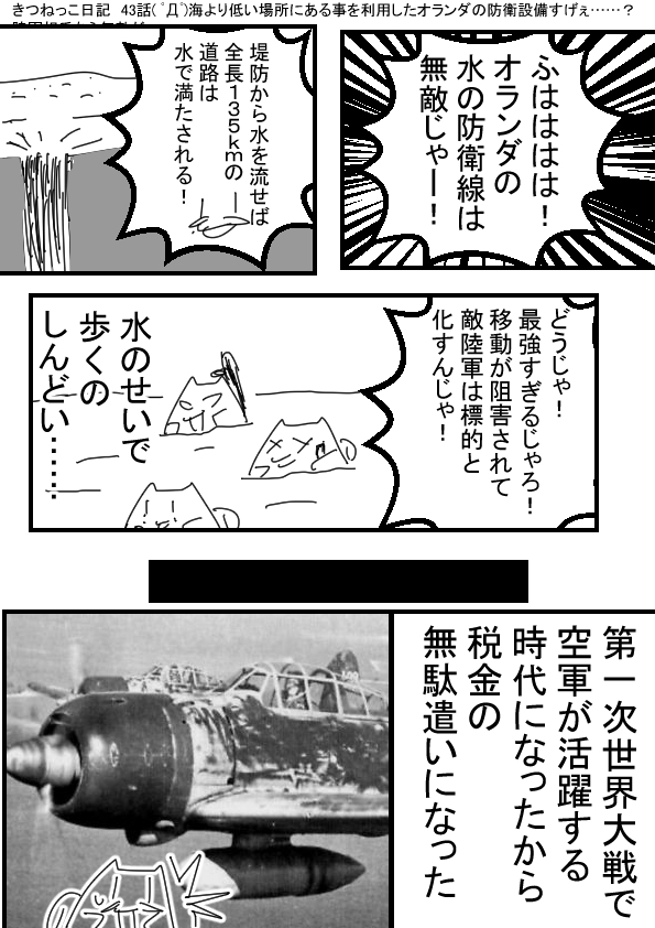 | きつねっこ日記 43話 ( ゚Д゚)海より低い場所にある事を利用したオランダの防衛設備すげぇ……?陸軍相手なら無敵だ…… |