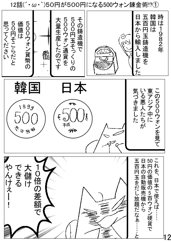 | 【12】漫画、こんな人類史は嫌だ! 12話(´・ω・`)50円が500円になる500ウォン錬金術!?(2ページ 20世紀(韓国 |
