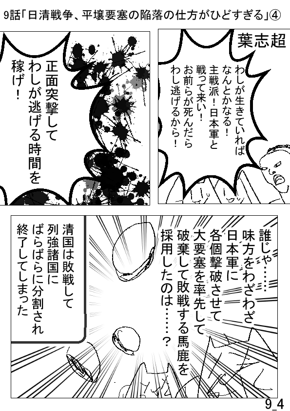 | 【9】漫画、こんな人類史は嫌だ! 9話(´;ω;`)日清戦争、平壌要塞の陥落の仕方がひどすぎる(4ページ) |
