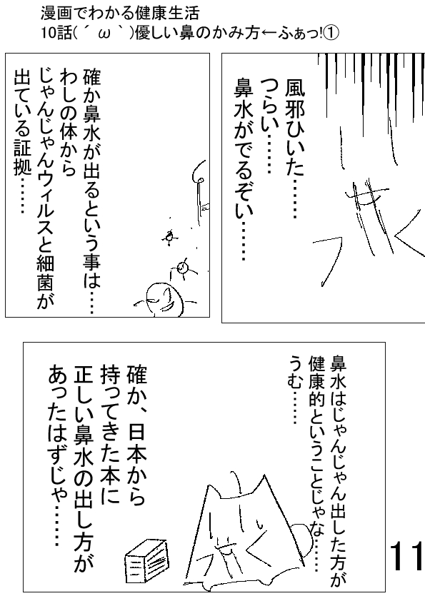 | 漫画でわかる健康生活 10話( ´ ω ` )優しい鼻のかみ方←ふぁっ!?(2ページ |