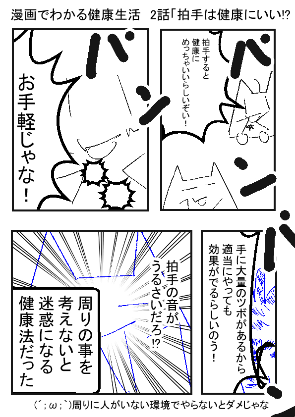 | 【2】漫画でわかる健康生活 2話「拍手は健康にいい!?」 |