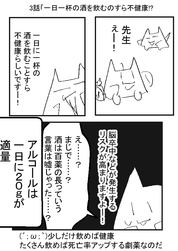 | 【3】漫画でわかる健康生活 3話「一日一杯の酒を飲むのすら不健康!?」 |