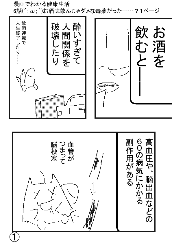 | 【6】漫画でわかる健康生活 6話(´;ω;`)お酒は飲んじゃダメな毒薬だった……? |