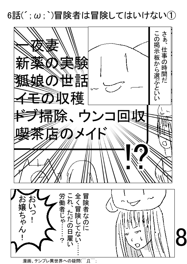 | 【6】漫画、テンプレ異世界への疑問( ̄Д ̄;) 6話(´;ω;`)冒険者は冒険してはいけない(2ページ) |