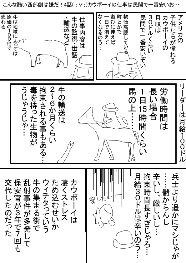 | 【4】こんな酷い西部劇は嫌だ! 4話( ;∀;)カウボーイの仕事は民間で一番安いお… |
