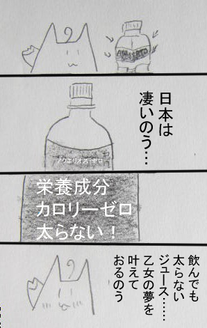 ★(ノ゜ω゜)(ノ゜ω゜)先生ー。カロリーゼロ商品って痩せるの?†(´・ω・`)太るぞい。 カロリーゼロと表示しているだけで、ちゃんと栄養はあるんじゃ。★(ノ゜ω゜)(ノ゜ω゜)そんな!?