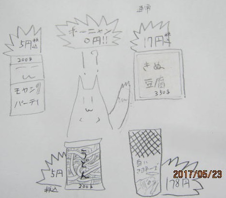 最小限の人件費で、運営している可能性が濃厚だ。商品の値段が異常に安いから、きっと人件費を削りまくっているのだろう。そうやって推理しているとタヌウがチラシを指差して話しかけてきた。