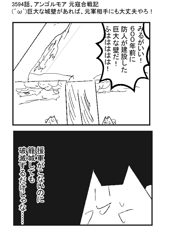 ★(ノ゜ω゜)(ノ゜ω゜)先生ぇー!堅牢な城壁があれば圧倒的に有利ですよねー! 元寇の600年前に、すごい城壁を防人が作ったらしいですよー! -- †(´・ω・`)馬鹿もーん! ナポレオンも言ってるじゃろ!要塞にこもるのは死亡フラグって! -- ★(ノ゜ω゜)(ノ゜ω゜)え?死亡フラグ? -- †(´・ω・`)だって……対馬って、日本から見捨てられた状態じゃろ? つまり、援軍がこないじゃろ? 要塞にこもって戦なんかしたら…… -- ★(ノ゜ω゜)(ノ゜ω゜)破滅を待つのみ……? -- †(´・ω・`)うむ -- ★(ノ゜ω゜)(ノ゜ω゜)じゃ先生なら、どうやって対馬を防衛するの? -- †(´・ω・`)ん?対馬は捨てる! -- ★(ノ゜ω゜)(ノ゜ω゜)こら!?対馬を守れよ! -- †(´・ω・`)じゃって、対馬で戦うと、元軍の補給線半分くらいになるし…… 自然災害で壊滅するリスクが激減するし…… |