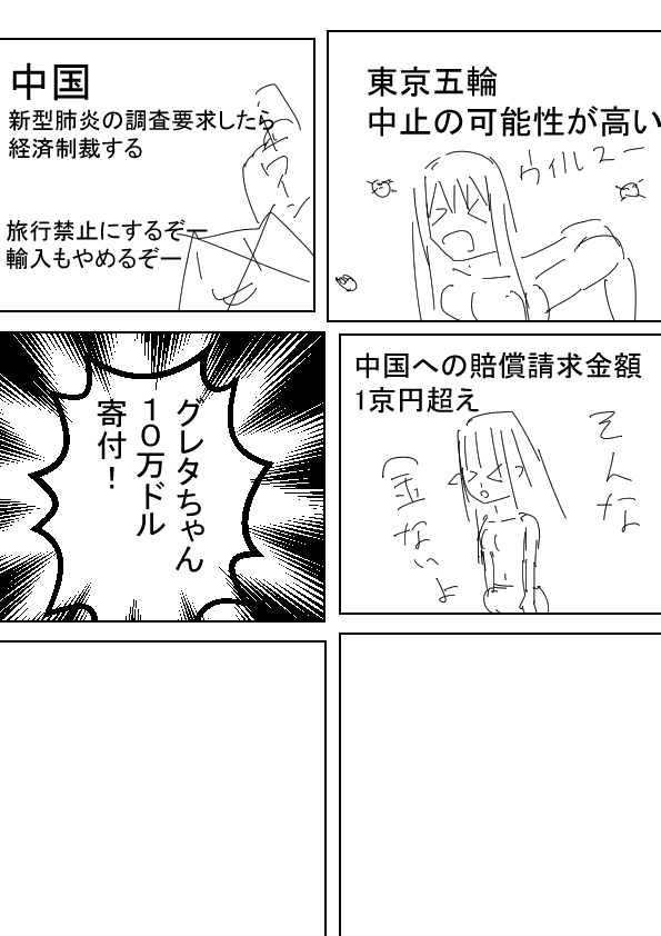 グレタ(´・ω・`)新型肺炎に苦しむ子供たちのために、10万ドル寄付します!