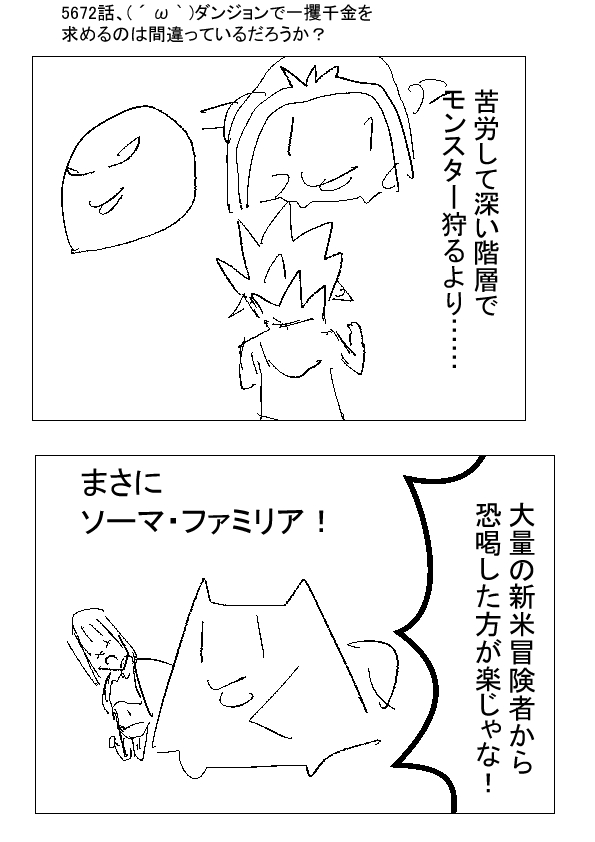 - ★(ノ゜ω゜)(ノ゜ω゜)先生ぇー!一般的な冒険者の生活を想像してください -- †(´・ω・`)……命がけなのに、大して上がらないステータス…… - ★(ノ゜ω゜)(ノ゜ω゜) -- †(´・ω・`)下級冒険者から抜け出せない日々…… 娼婦との間にできた子供をポイ捨て…… - ★(ノ゜ω゜)(ノ゜ω゜) -- †(´・ω・`)気づけば、ソーマ・ファミリアで神酒中毒…… 新米冒険者を大量に勧誘して、彼らの儲けを「集金」という形で集める日々…… - ★(ノ゜ω゜)(ノ゜ω゜)やめろ!?なんて夢がないんだ!? -- †(´・ω・`)きつねっこをモフモフ…… - ★(ノ゜ω゜)(ノ゜ω゜)今までの文脈と関係ないぞ?!こら! -- |
