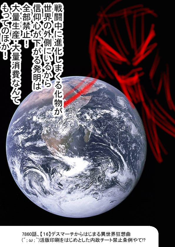神々「信仰心が下がると、世界の外側にいる化け物たちが入ってきて、世界滅亡するやろ! 活版印刷も禁止にするわ!反論は許さん!」 主人公( ;∀;) 神々「電話とかの楽な通信手段もダメだぞ! あと、大量輸送も禁止! 工場作って、大量生産・大量消費もダメ!」 主人公( ;∀;) 神々「わかったな! じゃ、信仰心を高めるために無茶したら食料不足になったな!人間の一般人どもが生活できなくなったぞ!」 米騒動みたいな大騒動になった ★★★ ー- ★(ノ゜ω゜)(ノ゜ω゜)先生ぇー!大変だぁー! -- †(´・ω・`)でぇじょうぶだ!外からやってくる化け物を倒せばいいべ! ー- ★(ノ゜ω゜)(ノ゜ω゜)……倒せそう? -- †(´・ω・`)なんか、自己進化しまくるチーターらしい。一度、くらった攻撃は、次の日には耐性できて効かない ー- ★(ノ゜ω゜)(ノ゜ω゜)主人公すら超越したチート!? -- |