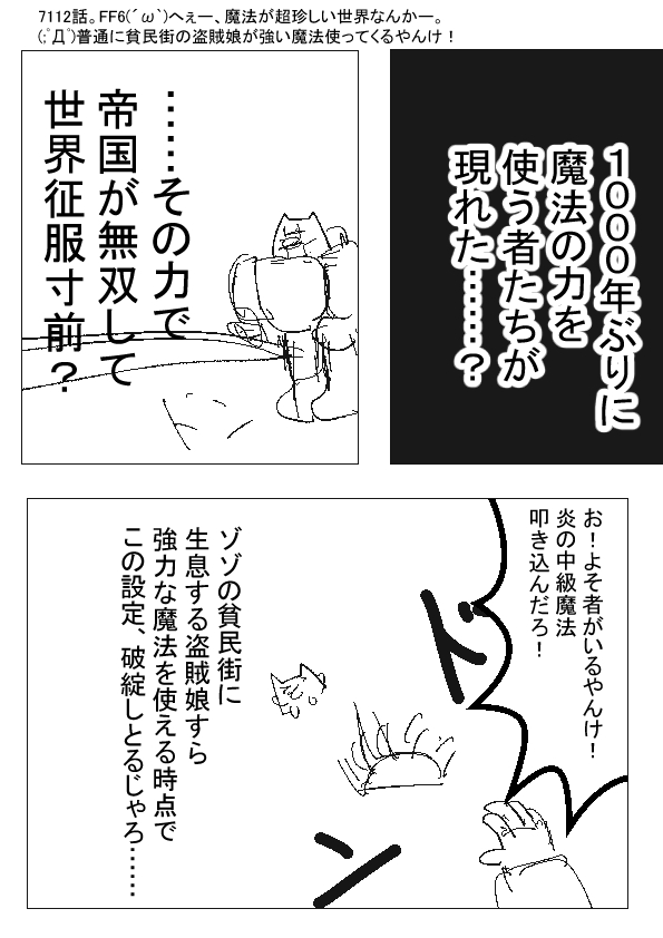 †(´・ω・`)……いや世界観的に、帝国とか、人造魔導師とか、迫害逃れた魔導師達の子孫の村くらいしか、魔法使えないなぁーって。