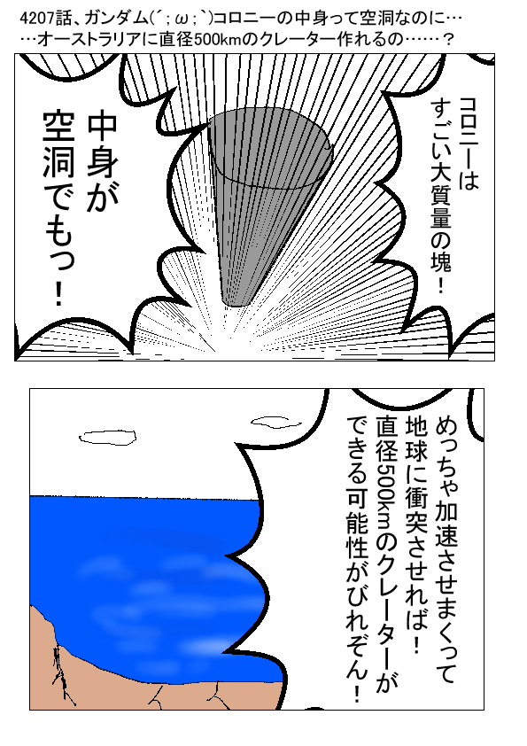 | 【168】ガンダム (´;ω;`)コロニーの中身って空洞なのに……オーストラリアに直径500kmのクレーター作れるの……? 機動戦士ガンダム0083 |