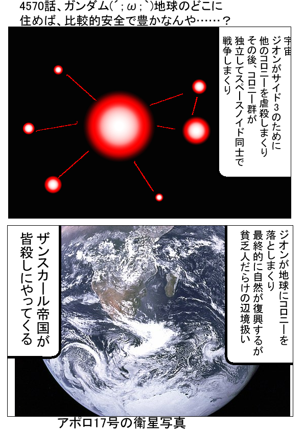 | 【172】ガンダム (´;ω;`)地球のどこに住めば、比較的安全で豊かなんや……? |