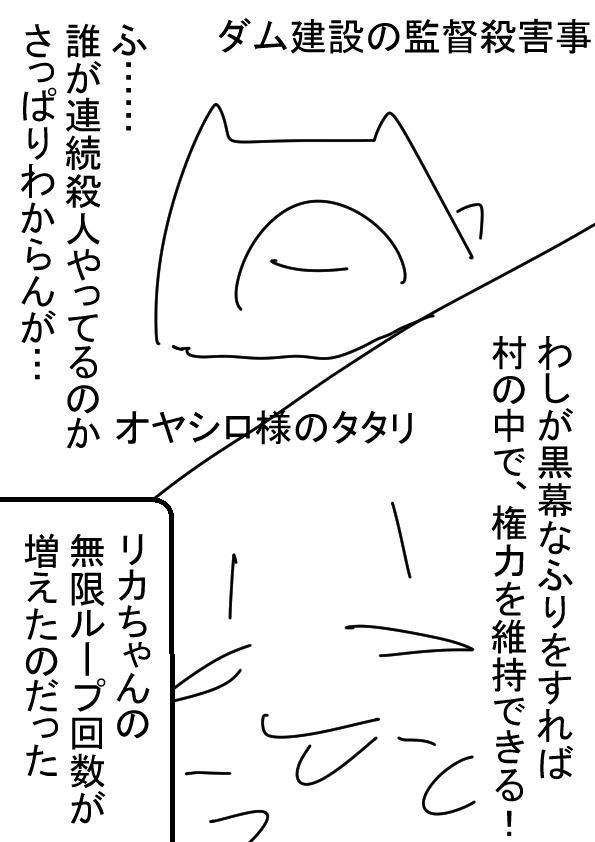 ;∀;)黒幕の素振りしたら、しおんが、とんでもない事をして、姉を監禁、女王感染者のリカまで死なせたから、雛見沢終了しちゃったお…