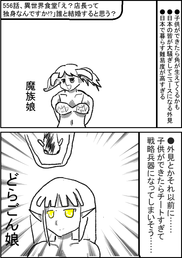 ★(ノ゜ω゜)(ノ゜ω゜)先生ぇー!店長は誰と結婚すると思いますかー! †(´・ω・`)少子高齢化社会じゃし……結婚せずに、財産は国が没収ENDかのう…… ★(ノ゜ω゜)(ノ゜ω゜)嫌な推理はやめろ!? †(´・ω・`)じゃ金持ちだから、お見合いして結婚 ★(ノ゜ω゜)(ノ゜ω゜)原作に登場しないキャラだと!? 原作に登場しているキャラで選ぶんだ! †(´・ω・`)魔族娘? ★(ノ゜ω゜)(ノ゜ω゜)子供に角が生えて、学校で虐められるぞ!?異端を制裁する子供社会を知らんのか!? †(´・ω・`)じゃエルフ娘? ★(ノ゜ω゜)(ノ゜ω゜)あれ、ドラゴン娘だぞ!?わかってボケてるだろ!? もしも子供が出来たら、やばいぞ! 主に地球がっ! †(´・ω・`)狐娘 ★(ノ゜ω゜)(ノ゜ω゜)それはアンタの妄想だ! †(´・ω・`)そんな!? |