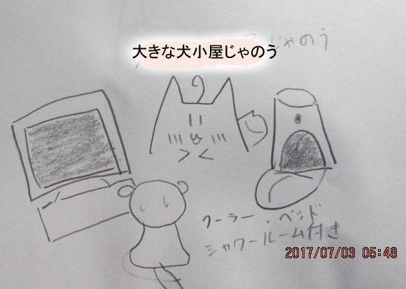 | 【挿絵】「シロの家がしゅごい……テレビ・ベット付き」 「シロのゴーカな家だゾ」 | 2017 7/6 |