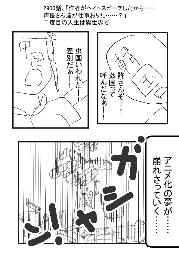 【お詫び】私の過去のいくつかのツイートにつきまして、多くの方に非常に不快な思いをさせてしまう、不適切な表現がありましたことを深くお詫び申し上げます。 事実関係を正確に把握せず、深い考えもなく行った発言ではありますが、行きすぎた内容であったことを深く反省しており、不快に思われた皆さまのお許しを頂けるとは思っておりませんが、心より謝罪させて頂きたいと思います。 また自著「二度目の人生を異世界で」の一部表現に関しても、自らの拙い文章表現と軽率な発言により、不快感をを与える文章となってしまっていることを、併せてお詫びいたします。 そのため「小説家になろう」上の該当する箇所の公開を停止し、二度と皆様に不快な思いをさせることの無いよう改めて内容を精査いたします。また、書籍版に関しても、該当書籍の修正を行えないか、出版社と相談いたします。 改めまして、この度ご不快な思いをさせてしまった皆様および、ご迷惑をお掛けした関係各位に、ここに深くお詫びを申し上げます。 |
