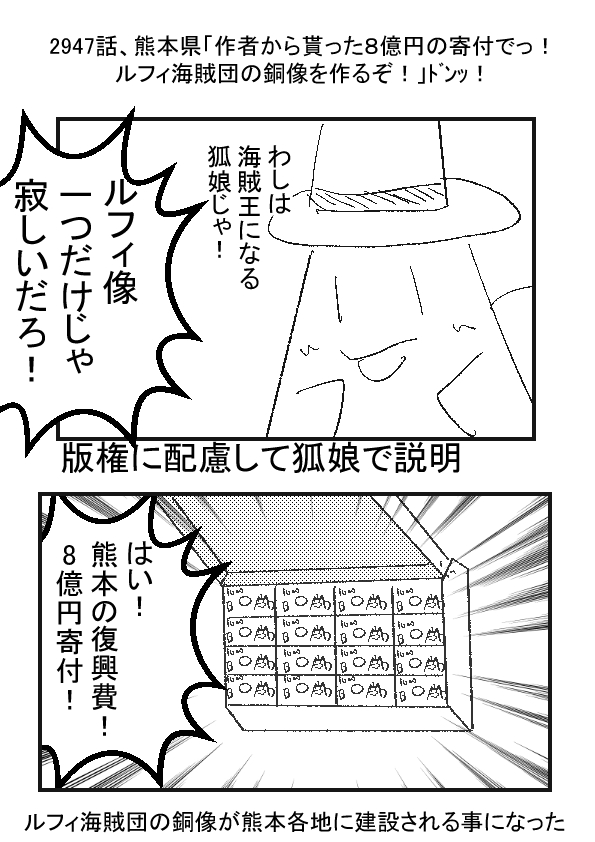 ワンピース ONE PIECE 【28】 熊本県「作者から貰った8億円の寄付でっ!ルフィ海賊団の銅像を作るぞ!」ドンッ! |