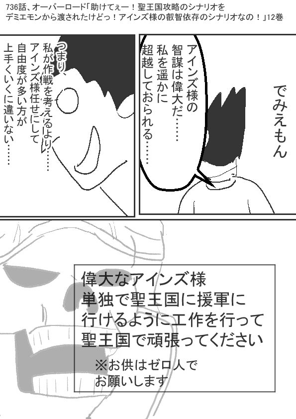 デミエモン「まず、聖王国を助けるために、アインズ様単独で援軍にいってください。