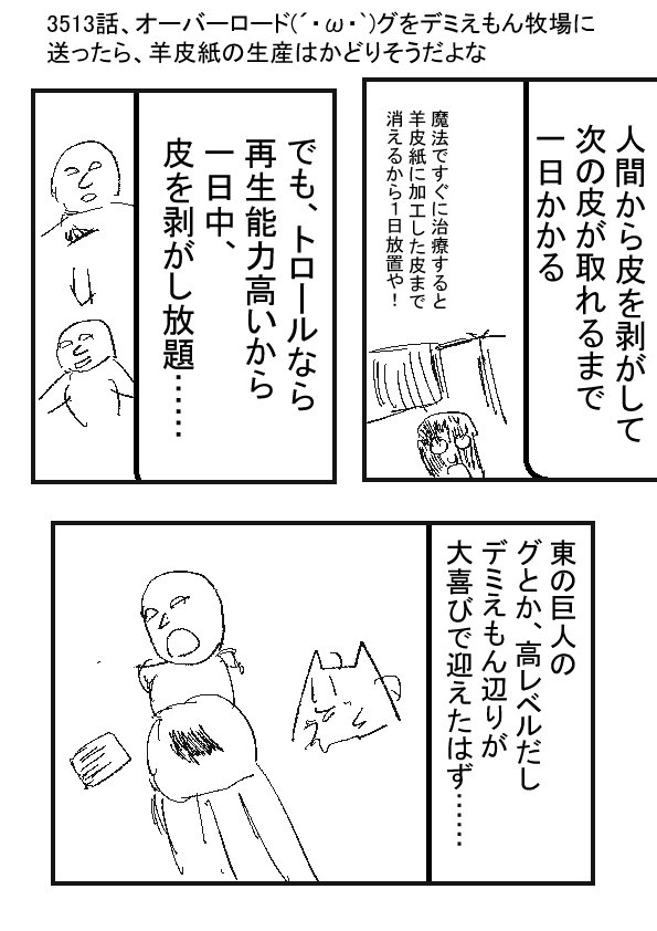デミえもん(´・ω・`)素晴らしい!人間から取れる羊皮紙は治療の関係で1日1回だけだが、再生能力が強いトロールなら取り放題だ!