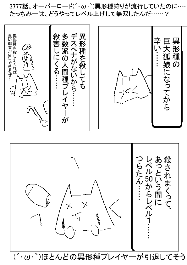 2018/9/18 【オーバーロード】←まとめたページ 日付順に記事を表示する? 人間種プレイヤーー(´・ω・`)(´・ω・`)偉形種ならPKしてもペナルティなしwww 殺しまくろうwww装備とか落としてお得www たっちみ(´ω`)全員返り討ちにしてやる! ★★★ ー ★(ノ゜ω゜)(ノ゜ω゜)先生ぇー!つまり!どういうことだぁー! ーー †(m´・ω・`)……襲ってくるプレイヤーを片っ端から殺せば、レベリングもできるし、金も稼げるし…… ー ★(ノ゜ω゜)(ノ゜ω゜)どんな修羅プレーだ…… ーー †(m´・ω・`)たっちみー、一撃で相手を殺害してたし…… オンラインゲームでどんどんレベルが上がれば……大抵の人間種プレイヤーが雑魚になるじゃろ……? ー ★(ノ゜ω゜)(ノ゜ω゜)修羅か…… ーー