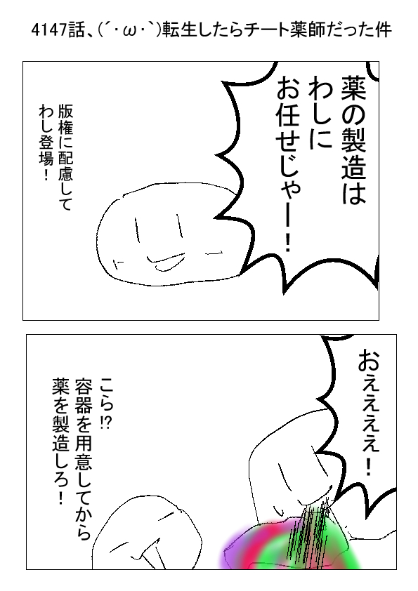 スライム(´・ω・`)洞窟で、チートな薬草を食べまくったから、凄い回復薬を作れるぜ! ドワーフ「しゅげぇぇぇぇぇぇ!」 国家「化物だぁぁぁぁぁ!」 ★★★ - ★(ノ゜ω゜)(ノ゜ω゜)先生ぇー!このスライムっ!便利だぞー! - †(´・ω・`)……しかも、女性からモテモテ。 - ★(ノ゜ω゜)(ノ゜ω゜)そりゃ、支配者だからモテモテですよ。名前をつけたら、美少女を量産できますし。 - †(´・ω・`)(薬を製造するシーンを見て……ゲロを吐く漫画を描きたいと思ったから、こうなった……) - ★(ノ゜ω゜)(ノ゜ω゜)貴様!?外道か! - |