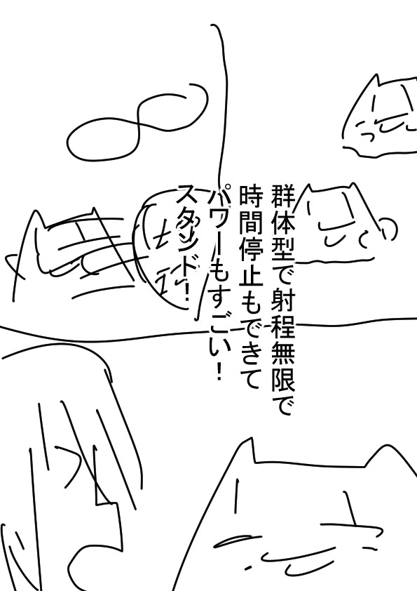 ★(ノ゜ω゜)(ノ゜ω゜)……時間停止しながら、群体スタンドで火力攻撃とかも、やりそうだな…