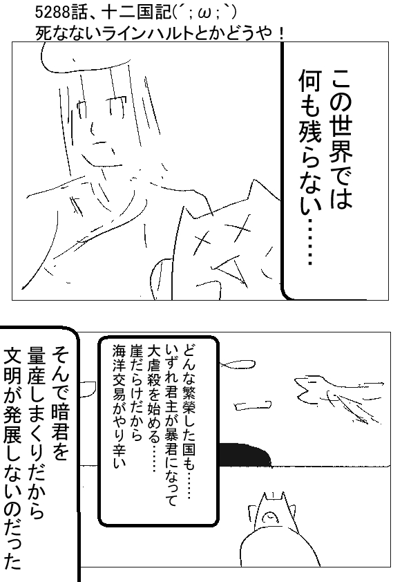 ★★★ - ★(ノ゜ω゜)(ノ゜ω゜)あの、先生、 -- †(´・ω・`)ん? - ★(ノ゜ω゜)(ノ゜ω゜)他国と戦争したら、ルール違反で王様ぶっ殺される世界だから…… 死なないラインハルトとか、戦えなくて暴君になるんじゃ……? -- †(´・ω・`)そもそも戦争に強い君主とか……その時点で、国が荒れている証拠じゃしな…… - ★(ノ゜ω゜)(ノ゜ω゜)失道の病になるじゃないですかー -- †(´・ω・`)ラインハルトが、十二国記の世界で国を作ったら……たぶん、天帝を倒す方法を模索するじゃろうな…… ずーと停滞した箱庭世界とか、なんの成長もないし…… |
