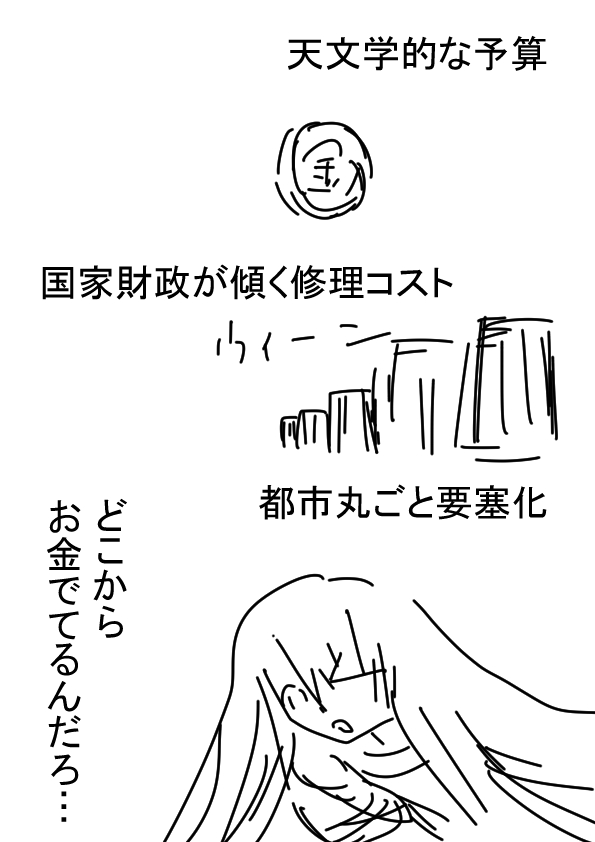 …これ、修理費用いくらだと思う? - †(´・ω・`)…修理コストだけでも兆円単位で、かかってそうじゃな… -