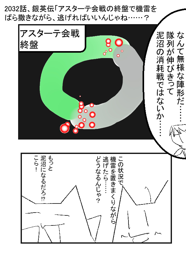 ヤン艦隊「中央突破されたと見せかけて、2個にわけた艦隊を合流させて、敵軍を背後から攻撃!」 ラインハルト艦隊「全速前進っー!前進して迂回して、敵の背後に食らいつけぇー!」 ↓ ヤン艦隊「うわぁ……艦隊の隊列が長く伸びすぎて、ひでぇ戦いになった……」 ラインハルト艦隊「泥沼の消耗戦だな……撤退して、元帥になるわ……」 ★★★ ★(ノ゜ω゜)(ノ゜ω゜)このとき、機雷まきながら、逃げれば…… どうなっていたんだ? -- †(´・ω・`)同じ場所をグルグル回ることができないから……機雷を回避するために、艦隊の陣形を維持できなくなって、泥沼の大乱戦になってたかな……?(同じこと、ラインハルト側もやるだろうし ーー ★(ノ゜ω゜)(ノ゜ω゜)こらぁ!?それじゃ結果は原作と同じだろ!? -- †(´・ω・`)でも、敵軍が後ろにいたら、機雷とかのトラップを置きまくりながら逃げたい気分になるじゃろ? ーー ★(ノ゜ω゜)(ノ゜ω゜)イミのない記事を作った先生ぇは、帝国大侵攻に参加してください! -- †(´・ω・`)死ぬのはいやじゃー! |