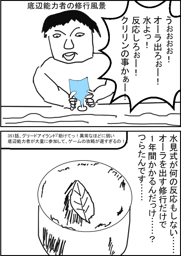 | 2017/9/6 バッテラ(´●ω●`)念能力者の皆〜、集まれ〜 グリードアイランドを攻略したら、500億ジェニーあげるぞー 底辺能力者(ノ✖ω✖)(ノ✖ω✖)わーい バッテラ(´●ω●`)念能力者の癖に、底辺だらけ!? オーラを身体から出す修行だけで、1年くらいかかるのに!? 底辺能力者(ノ✖ω✖)(ノ✖ω✖)グリードアイランドはクソゲー! 攻略やめて、ゲームの中で結婚するわ! ★★★ ★(ノ゜ω゜)(ノ゜ω゜)先生ぇー!どういう事だぁー! バッテラ氏が大量投入したプレイヤーたちっ! 底辺が多過ぎるぞぉー! 念能力者ってエリートだよね!? †(´・ω・`)……おそらく、最初の瞑想の修行だけで、飽きてしまって、その後、まったく修行しなかったとか……そんなパターンかのう……? ★(ノ゜ω゜)(ノ゜ω゜)それ、何の意味もないじゃん!? 普通に銃器使ったほうが便利だよ!?その程度の修行なら! †(´・ω・`)一般人が念の修行をしても……得られるものはあんまりない…… 恐らく、そういう世界なんじゃろうて…… ★(ノ゜ω゜)(ノ゜ω゜)そんな!? 【HUNTER×HUNTER】 ☚まとめたページ ●記事を日付順にブログで表示する( ;∀;)?(タグはHUNTER×HUNTERじゃ) | ||||