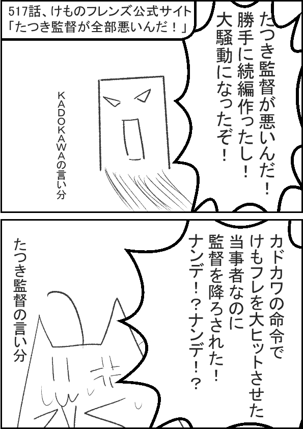 どっちみち、誰が悪いのか、最終的に確定しても……この騒動で、けもフレ終了じゃな。 狐娘をモフモフしたいのう…