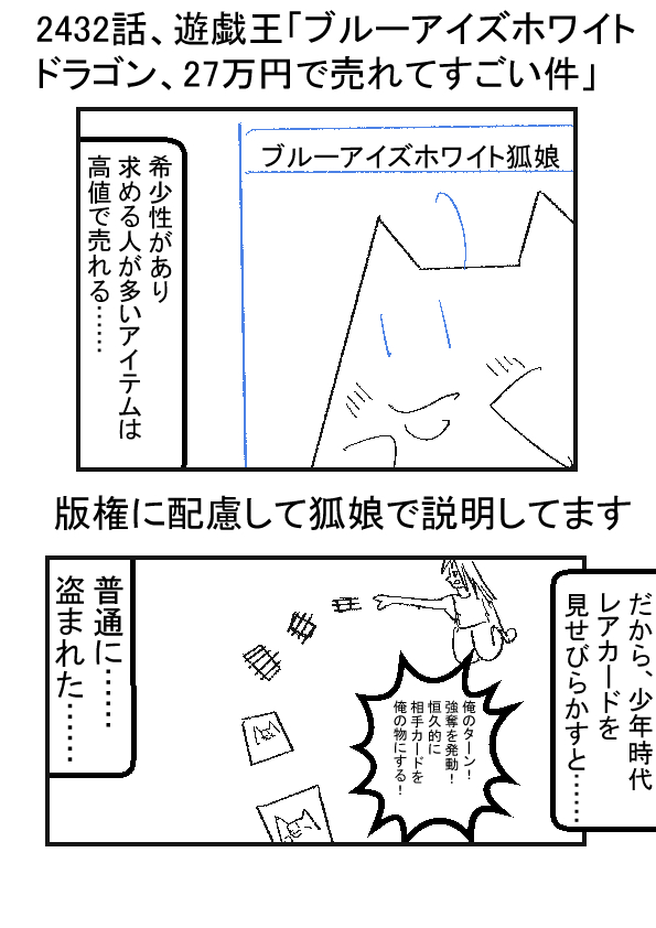 (´・ω・`)遊戯王世界みたいに、レアカードに数百万円の値段がつくのが当たり前になったら……物理攻撃して、盗む人多いじゃろうなぁ……