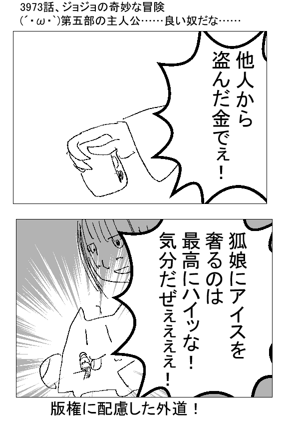 ジョルノ(´・ω・`)イタリアにきた観光客からぁー!カバンごと金を盗んでぇー! 貧乏な奴にアイスをプレゼントするのは、最高の気分だなぁー! ★★★ - ★(ノ゜ω゜)(ノ゜ω゜)こらー!? これは悪い事した奴が、良いことをすると「めっちゃ良いやつに見える理論だぞー!先生ぇー!」 -- †(´・ω・`)良い奴だなぁ! - ★(ノ゜ω゜)(ノ゜ω゜)本当にいいやつなのかぁ!? -- †(´・ω・`)周りが泥棒しまくりで、麻薬販売しまくりのウンコ環境じゃし…… 泥棒した金で、貧乏な子供にアイスをプレゼントとか、ジョルノいいやつじゃろ? - ★(ノ゜ω゜)(ノ゜ω゜)じゃ……その盗まれた金が、先生の金だったら……? -- †(´・ω・`)死ね! - ★(ノ゜ω゜)(ノ゜ω゜)こいつっー!自分の金の話になったとたんっ! 意見を180%変えやがったぞー!? -- |