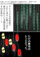 マトリックス「序盤に落ちてくる緑色の文字……寿司だった件。つまりマトリックスは寿司屋さんに支配されているんだよ!」… |